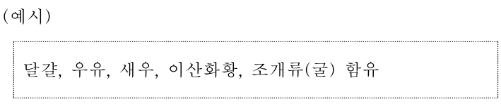 ** 식품 원료 중에 1) 알레르기 유발물질에 해당 되는 경우, 3) 표시방법에 따라 표시를 하여야 합니다.